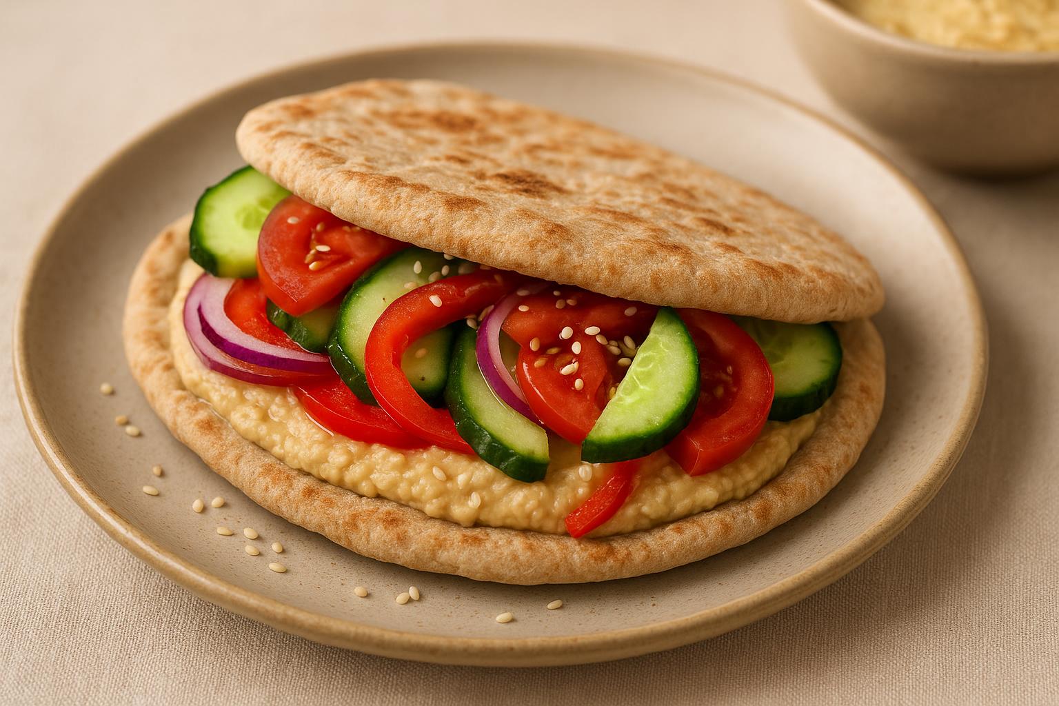 Пита с хумусом и овощами Пита с хумусом и свежими овощами — легкий, собранный завтрак с хорошим балансом сложных углеводов, растительного белка и деликатной жирности. Блюдо дает ровную сытость, легко адаптируется под сезон и остается свежим по вкусу даже при минимальной подготовке.