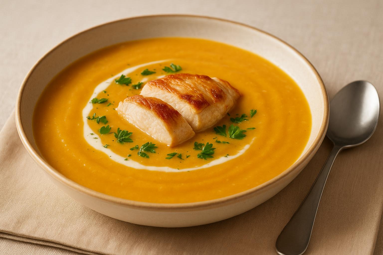 Крем-суп из тыквы Крем-суп из тыквы — тёплое и уютное блюдо для обеда с комфортной текстурой и насыщенным вкусом.